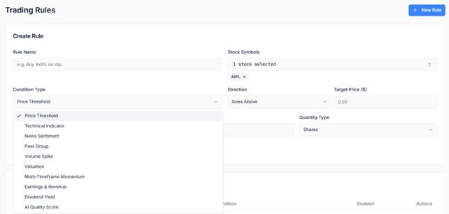 Uutena sääntönä on AI Picks. Tekoäly pisteyttää osakkeet ja suosittelee mitä ostaa ja myydä. Ehdotukset voi hyväksyä tai hylätä.