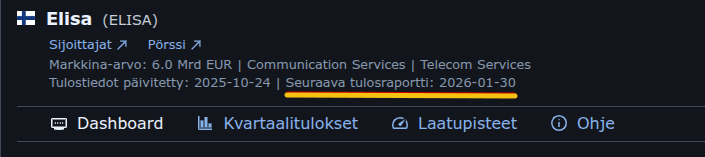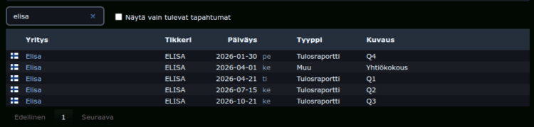 Yhtiön nimellä (esim. Elisa) näet kyseisen yhtiön tapahtumat