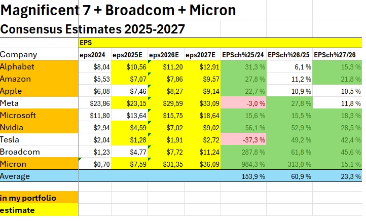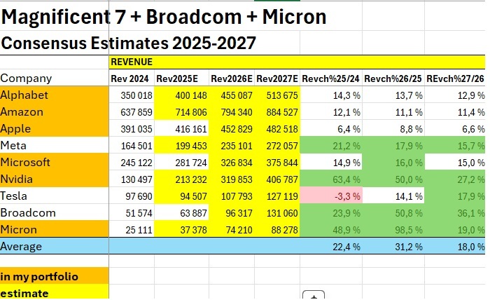 - vuonna 2027 Alphabetin ja Amazonin kasvu paranee, Nvidian ja Micronin hidastuu