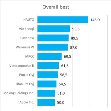 Kymmenen erilaisen rankingin yhteenvedossa norjalaiset osakkeet ovat edelleen kärjessä, syynä matala arvostus, vähävelkaisuus, hyvä osinkotuotto ja oman pääoman tuotto. Monien näistä tulos- ja osinkoennusteet ovat kuitenkin laskussa lähivuosille.