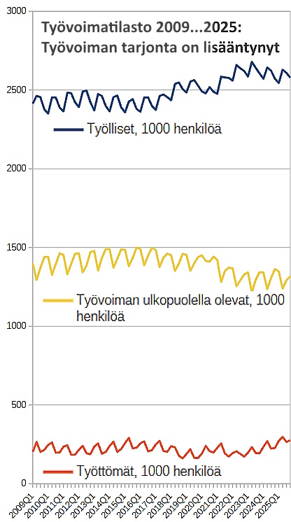 Tilastokeskuksen tietojen mukaan yhä useampi suomalainen haluaa töihin, mutta työpaikkoja ei ole riittävästi tarjolla ja monet päätyvät työttömiksi. Terve markkinatalous toimisi niin, että työtä tarjotaan